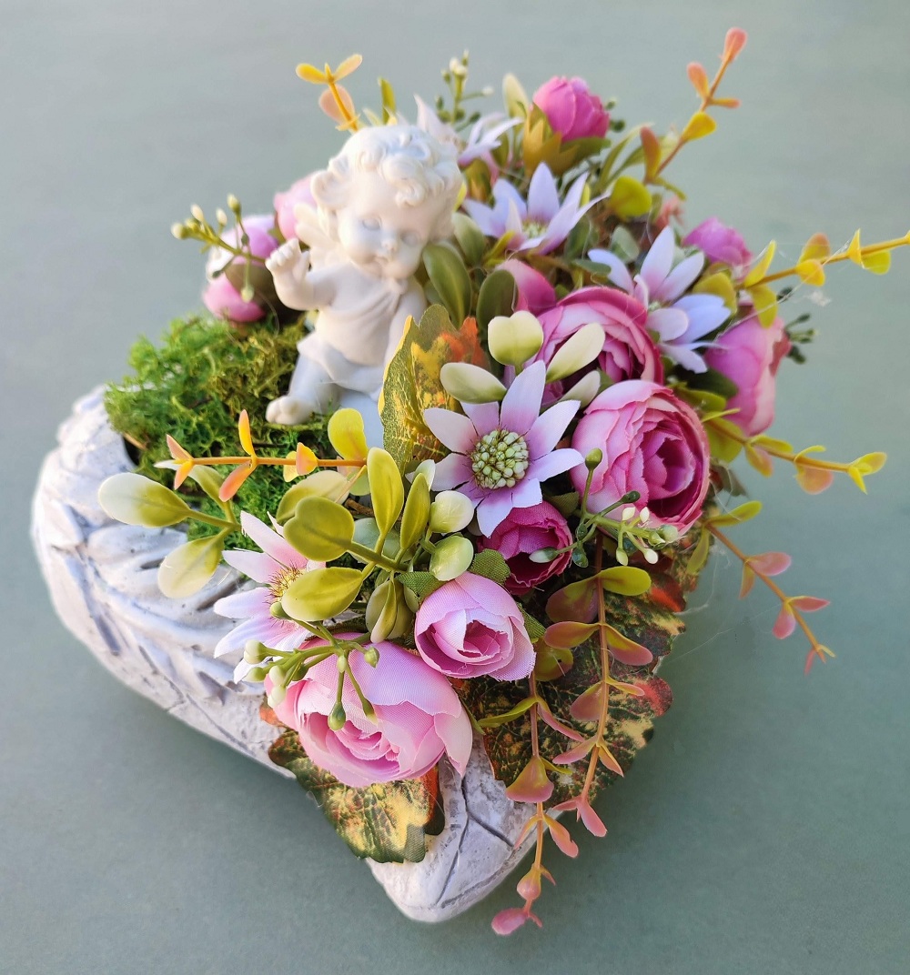 4132 J Urnový aranžmán srdce s anjelom 20 cm |