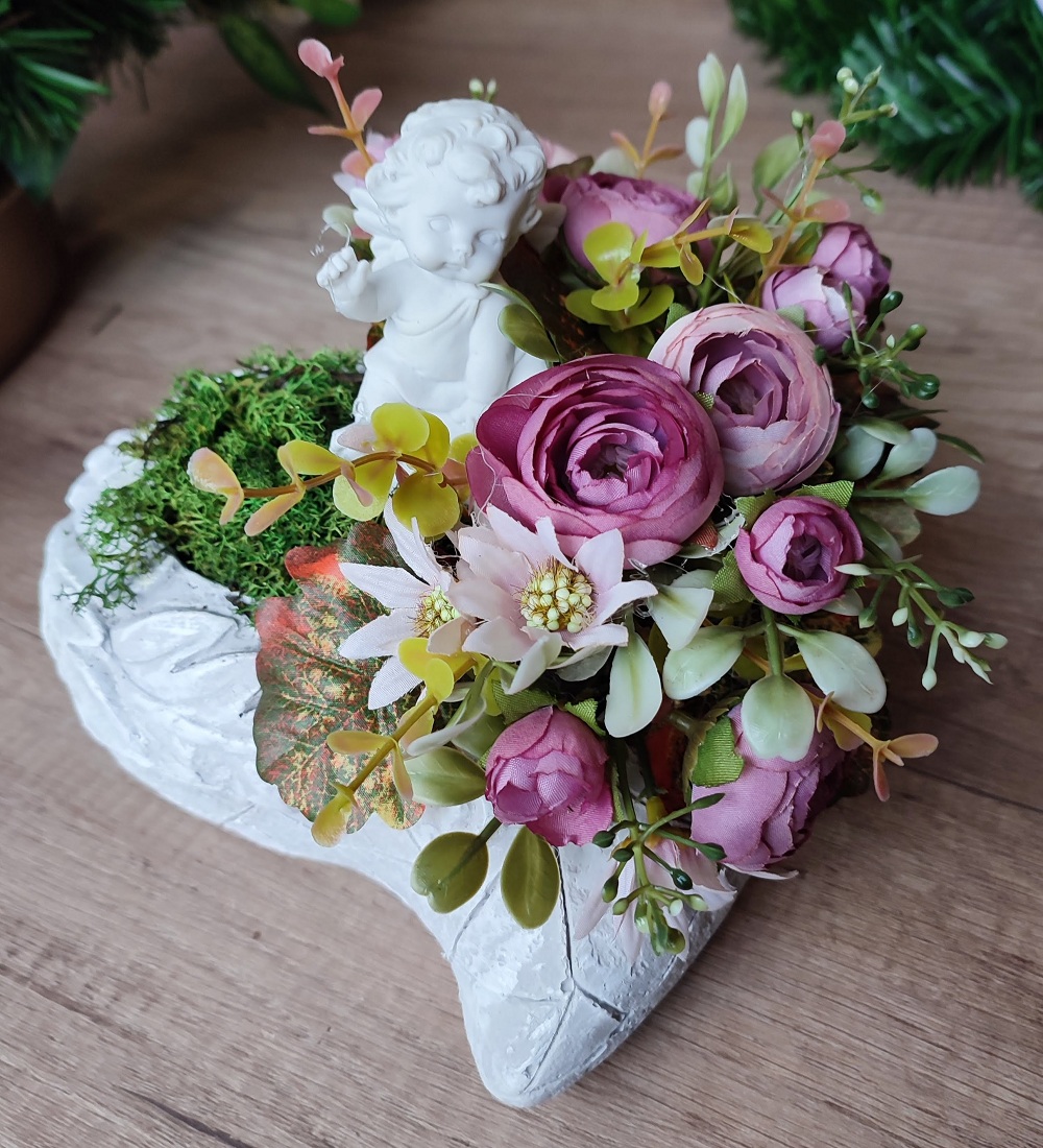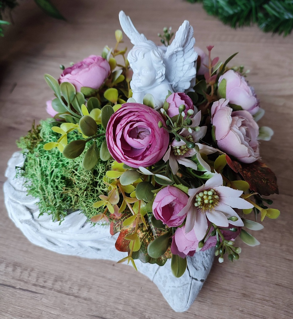 Úvod » HALLOWEEN, DUŠIČKY » Aranžmány a vence na hroby » Aranžmán srdce s anjelom 20 cm