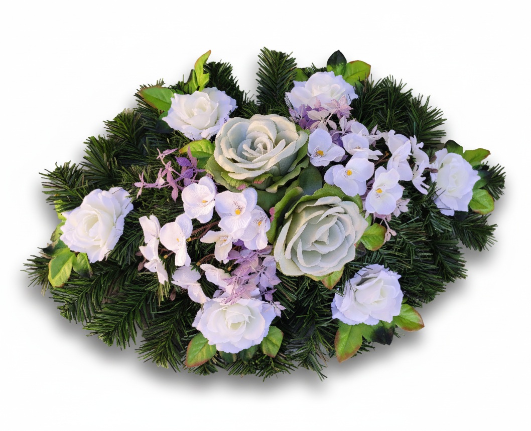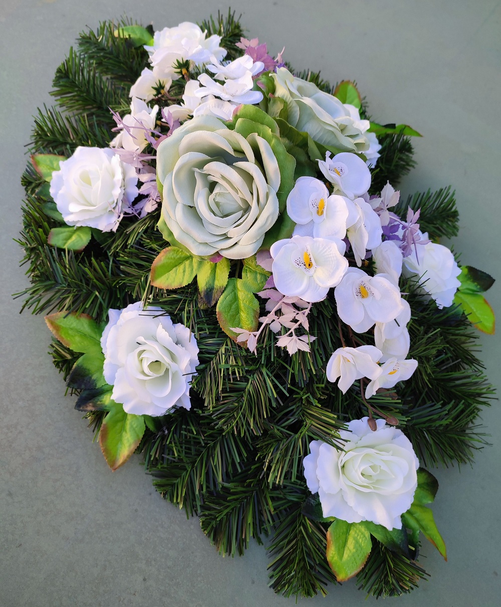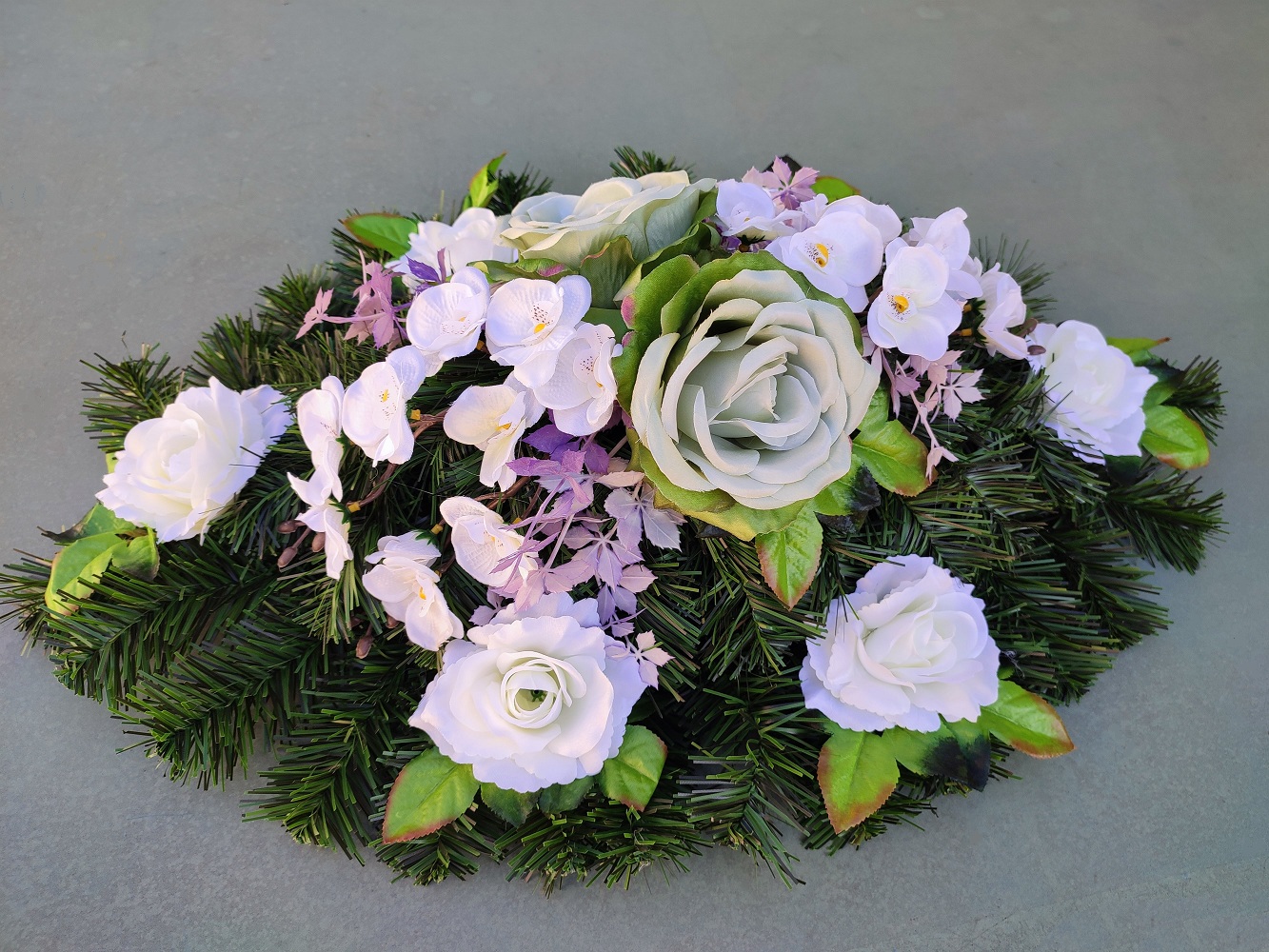Úvod » HALLOWEEN, DUŠIČKY » Aranžmány a vence na hroby » Smútočný veniec ikebana na hroby 70 cm