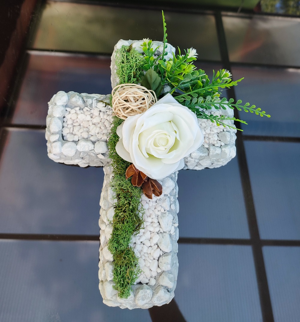 Úvod » HALLOWEEN, DUŠIČKY » Aranžmány a vence na hroby » Urnový aranžmán kríž