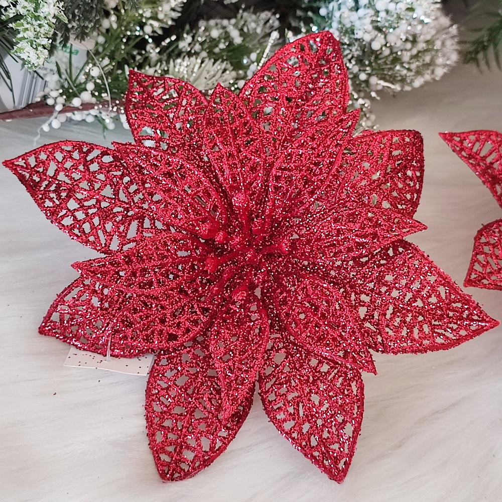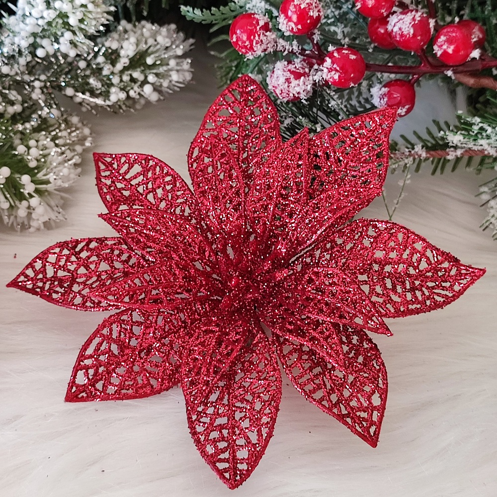 CIMG4549 DK.RED Vianočná ruža na stromček červená 2 ks 17 cm |
