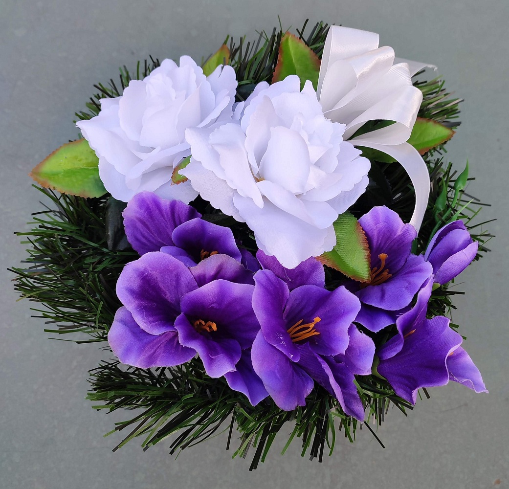 Úvod » HALLOWEEN, DUŠIČKY » Aranžmány a vence na hroby » Kytica na hroby fialová 30 cm