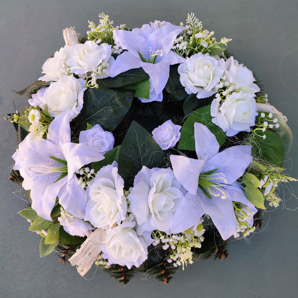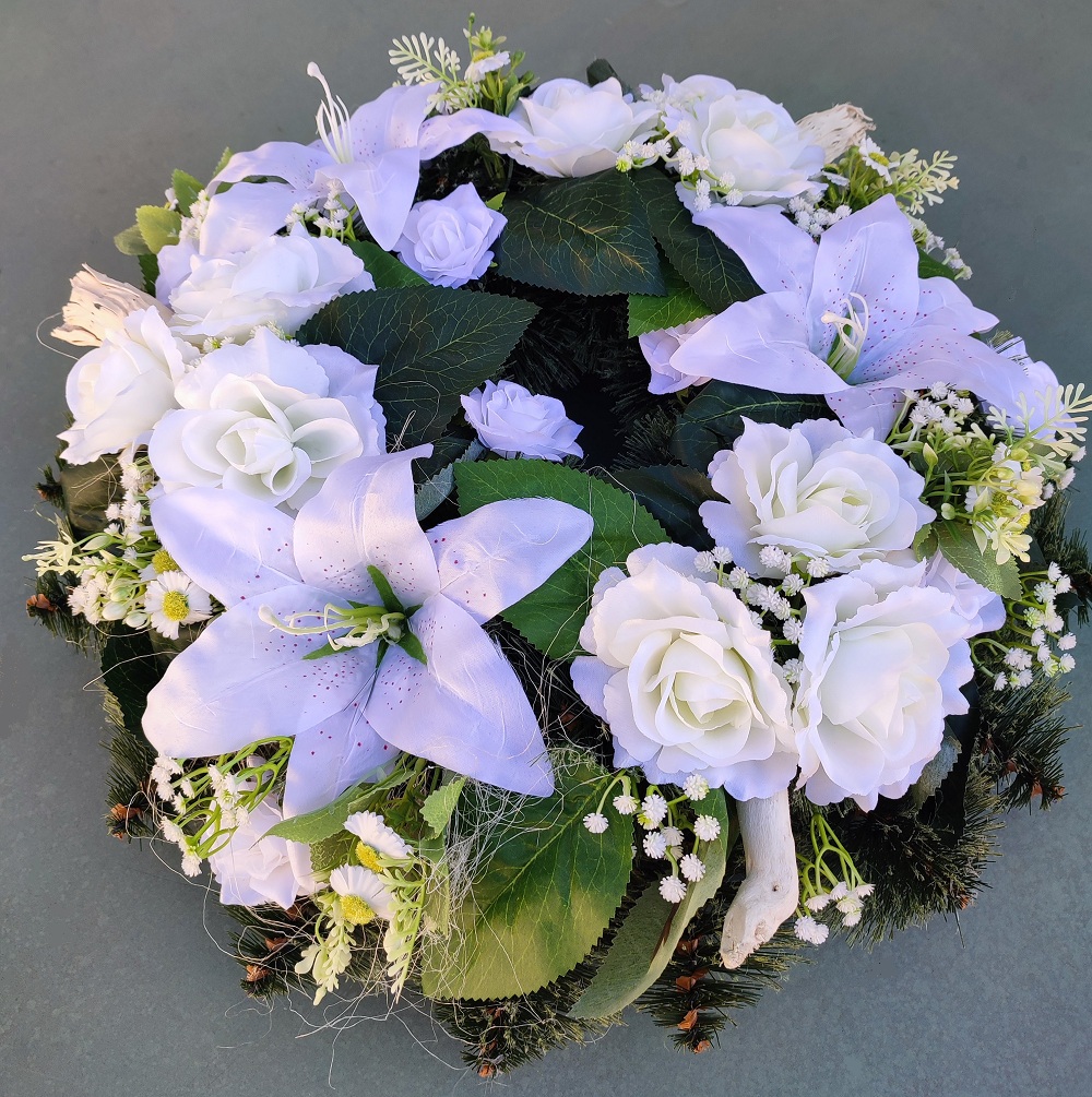 Úvod » HALLOWEEN, DUŠIČKY » Aranžmány a vence na hroby » Luxusný smútočný veniec na hroby 60 cm
