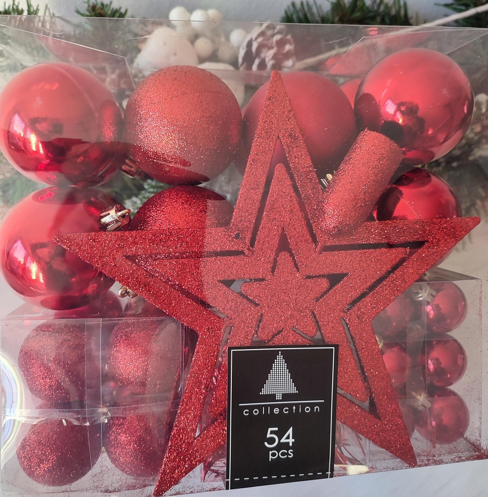 Úvod » VIANOČNÉ GULE A OZDOBY » Set červených ozdôb na stromček 54 ks