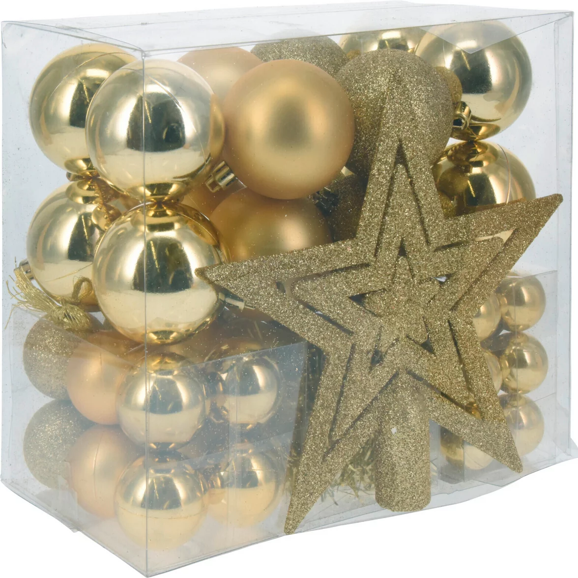 Úvod » VIANOČNÉ GULE A OZDOBY » Set zlatých ozdôb na stromček 54 ks
