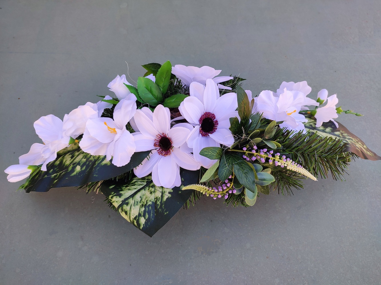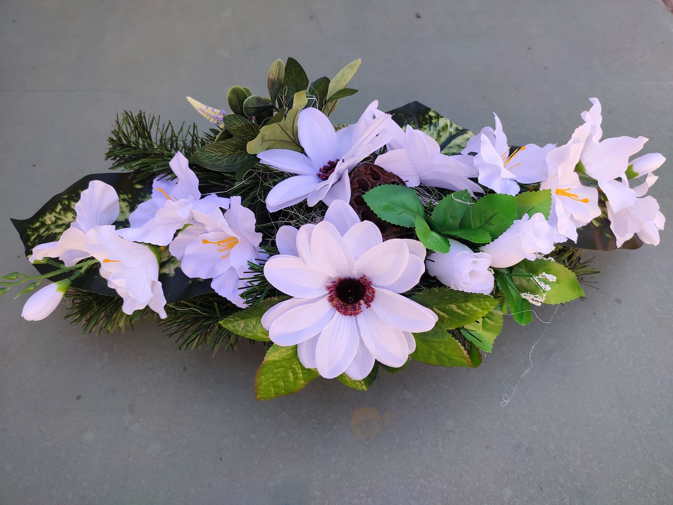Úvod » HALLOWEEN, DUŠIČKY » Aranžmány a vence na hroby » Smútočný aranžmán biely 71 cm