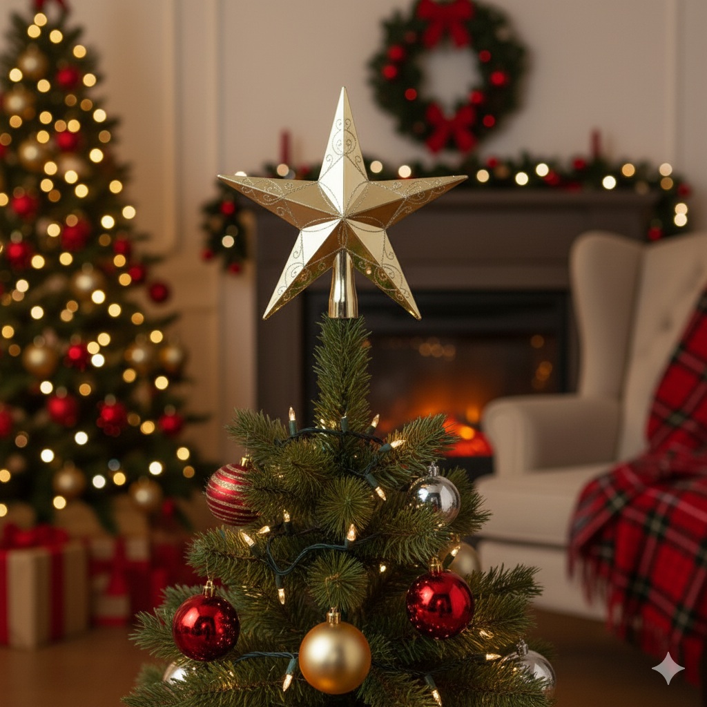 Úvod » VIANOČNÉ GULE A OZDOBY » Špic na stromček zlatá hviezda 20 cm