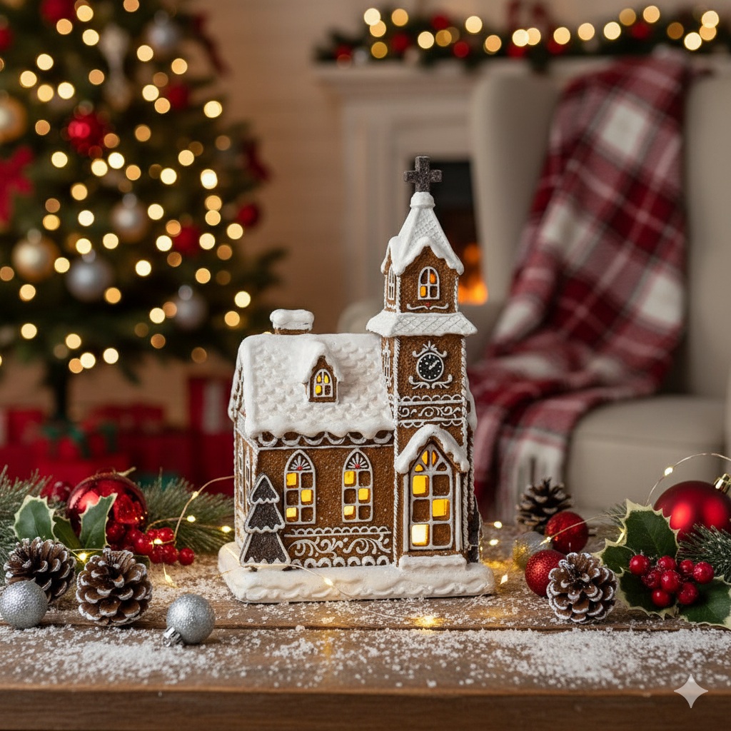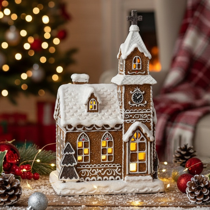 Úvod » VIANOČNÉ OSVETLENIE » Svietiace vianočné dekorácie » Svietiaci LED kostol perník 23 cm