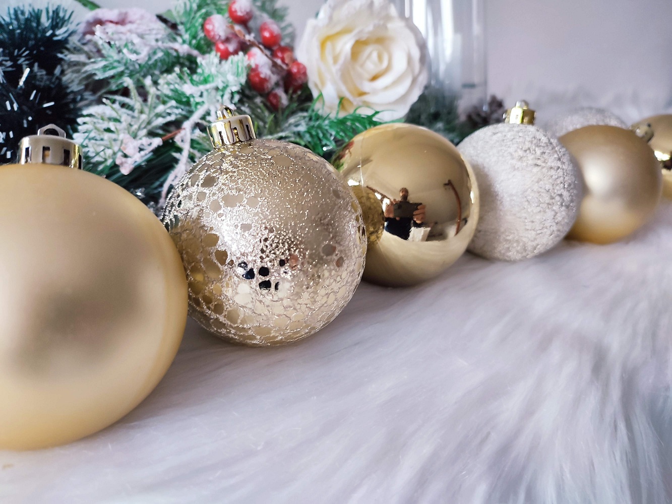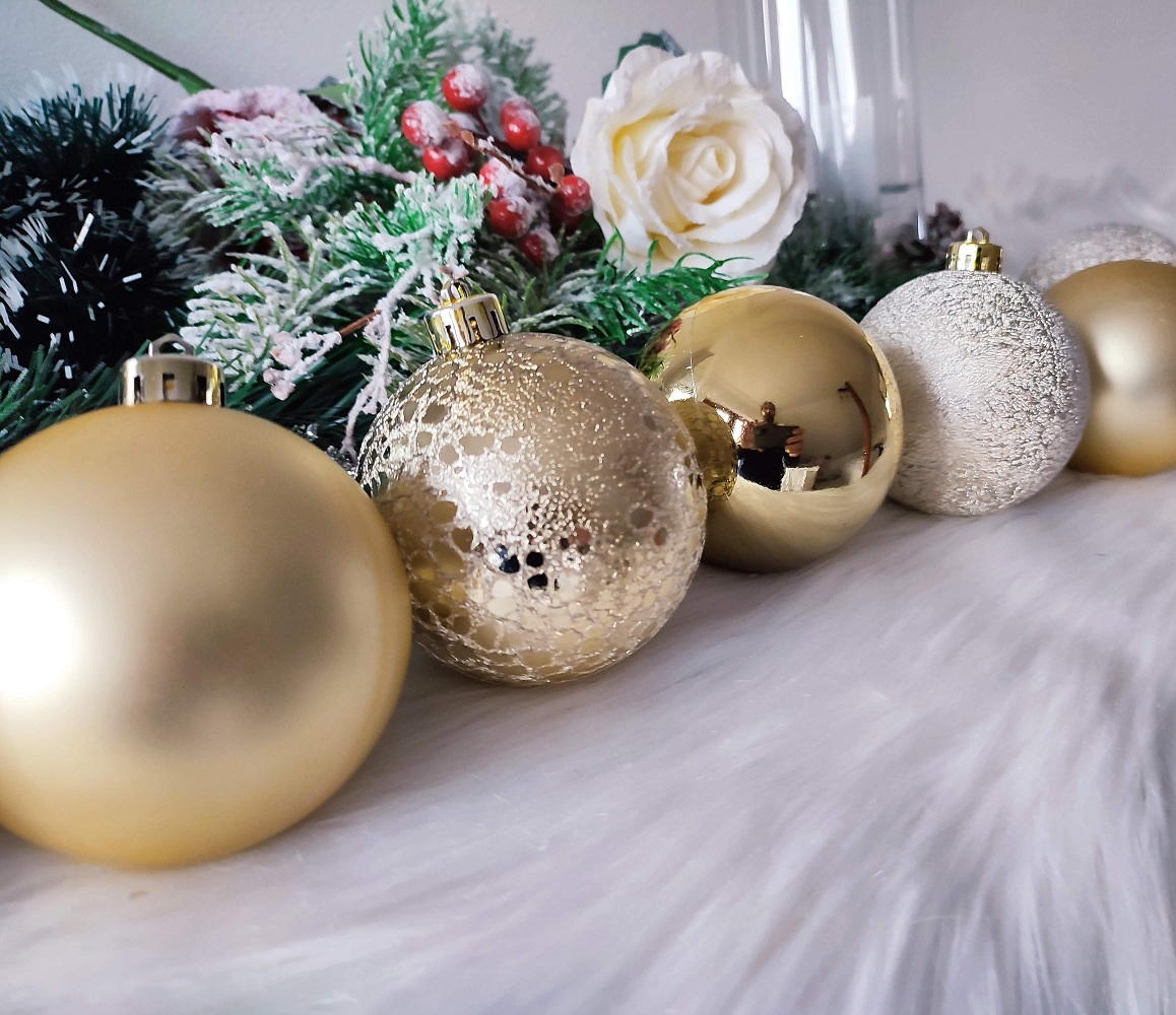 Krásne vianočné ozdoby veľké zlaté gule na stromček. V balení mix 4 druhy gúľ, perlové, lesklé, trblietavé a námraza. S priemerom 8 cm sú dostatočne veľké, aby upútali pozornosť a ideálne na zdobenie vianočného stromčeka. Balenie 8 ks.