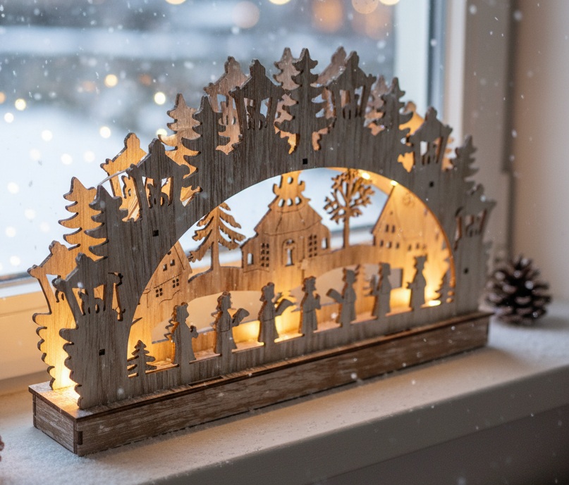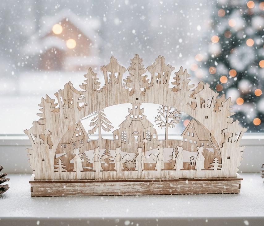 Úvod » VIANOČNÉ OSVETLENIE » Svietiace vianočné dekorácie » Vianočný drevený LED svietnik 30 cm